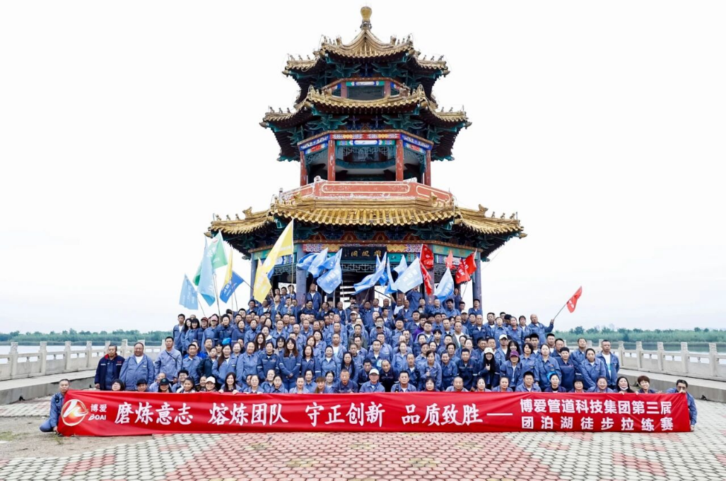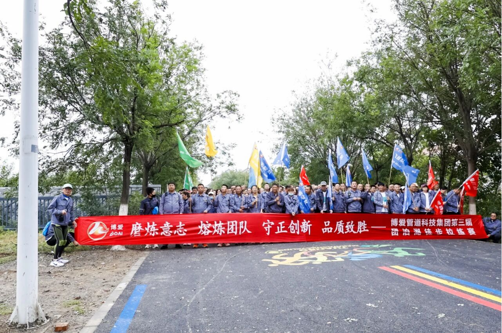 磨炼意志、熔炼团队——天津博爱管道集团第三届团泊湖徒步拉练赛已经圆满落下了帷幕。通过此次拉练赛,集团全体员工磨炼了心志,增强了体魄,挑战了自我,实现了突破,熔炼了团队,践行了集团“致力员工幸福成长,持续为客户创造最大价值,为社会进步和发展作出贡献”的企业使命!为打造学习型组织、运动型团队,促进员工快乐工作、快乐学习、快乐生活做实了一步!董事长殷切希望,从今往后我们每一位员工都能积极向上、热爱工作、热爱学习、热爱生活;希望从今往后我们每一位员工都能坚持运动、自律利他,幸福的生活;希望从今往后我们每一个小的团队都能团结一致、奋勇向前、互帮互助、干出成果;希望从今往后我们的每一个公司都能干劲十足,热火朝天、争先恐后、力创佳绩!为实现“致力员工幸福成长,持续为客户创造最大价值,为社会进步和发展作出贡献”的企业使命而努力奋斗!最后希望每一位员工在下一届徒步拉练赛中没有掉队,都能为自己争光,为小队争光、为大队争光,为集团争光,都能取得好成绩!